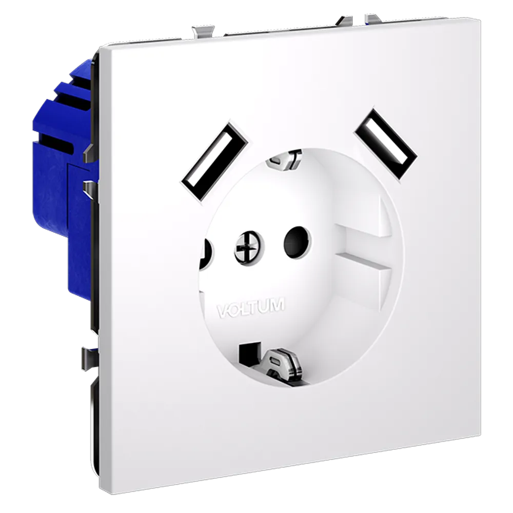 Розетка встраиваемая VOLTUM S70 с заземлением и защитными шторками 16А с USB A+A (белый матовый)