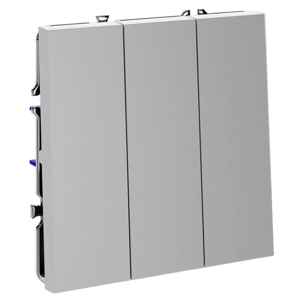 Трехклавишный выключатель VOLTUM S70 в цвете «серый» — это элегантное и функциональное решение для управления тремя независимыми световыми зонами из одной точки. Идеально подходит для гостиных, спален, кухонь и прихожих, где требуется раздельное включение основного, декоративного и акцентного освещения.